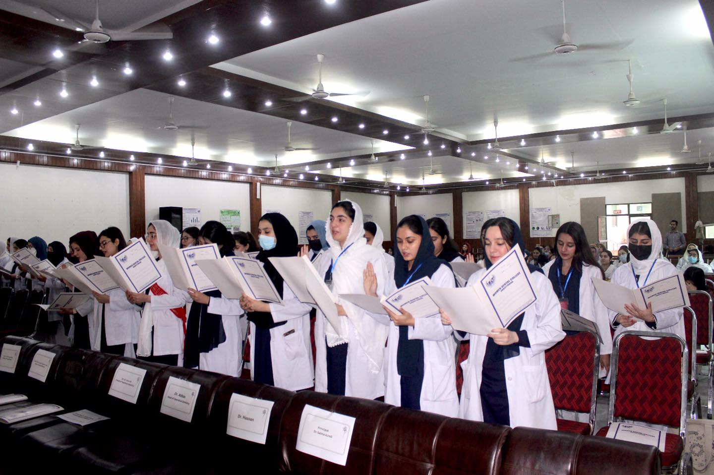 Student society members solemnly took an oath, led by Prof. Dr. Nida Qasim, to uphold ethical standards, foster unity, and serve the institution with honor and responsibility.