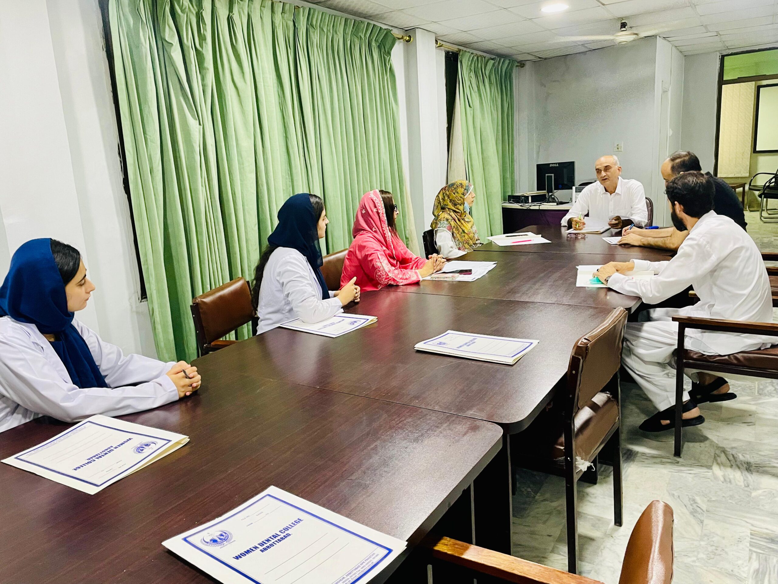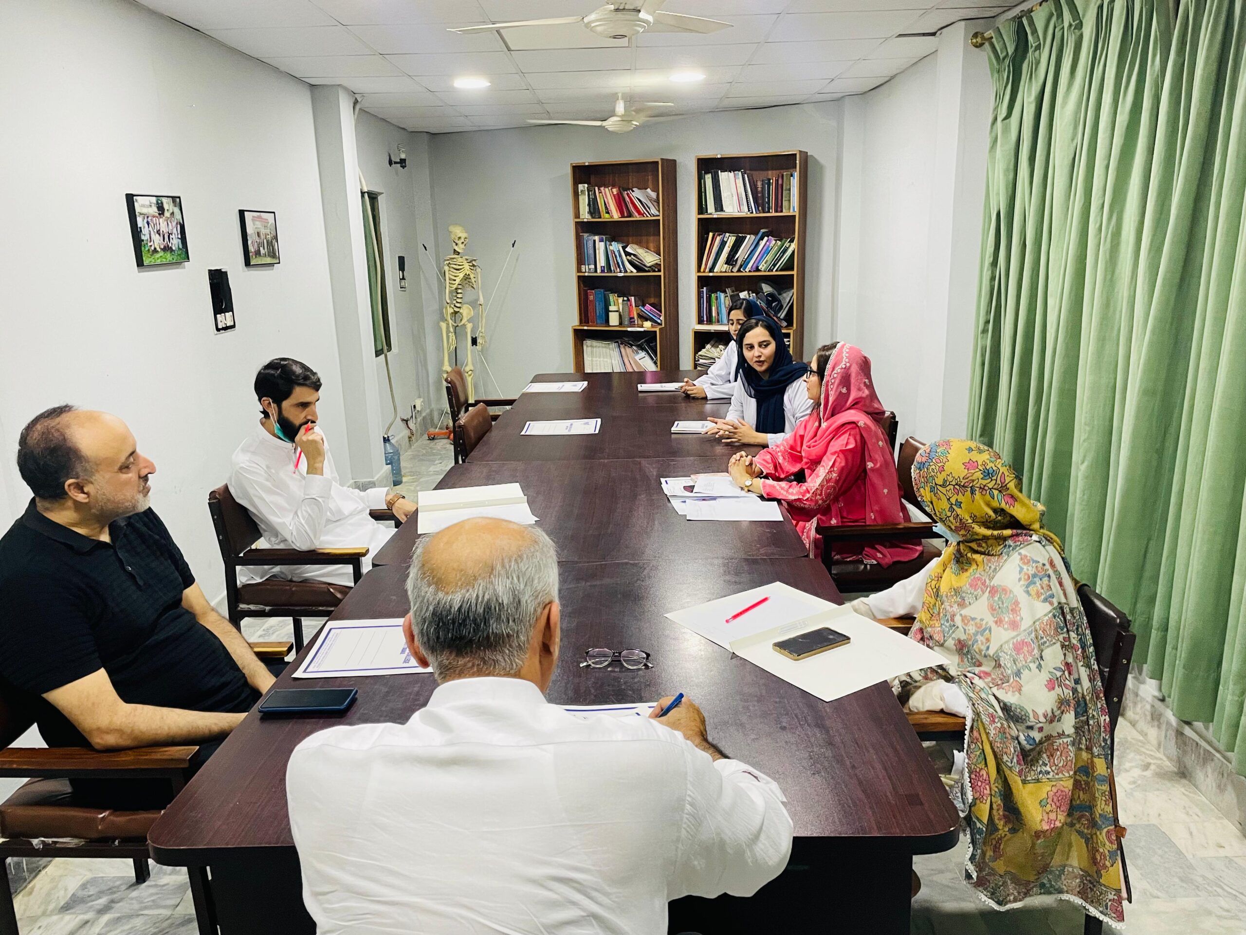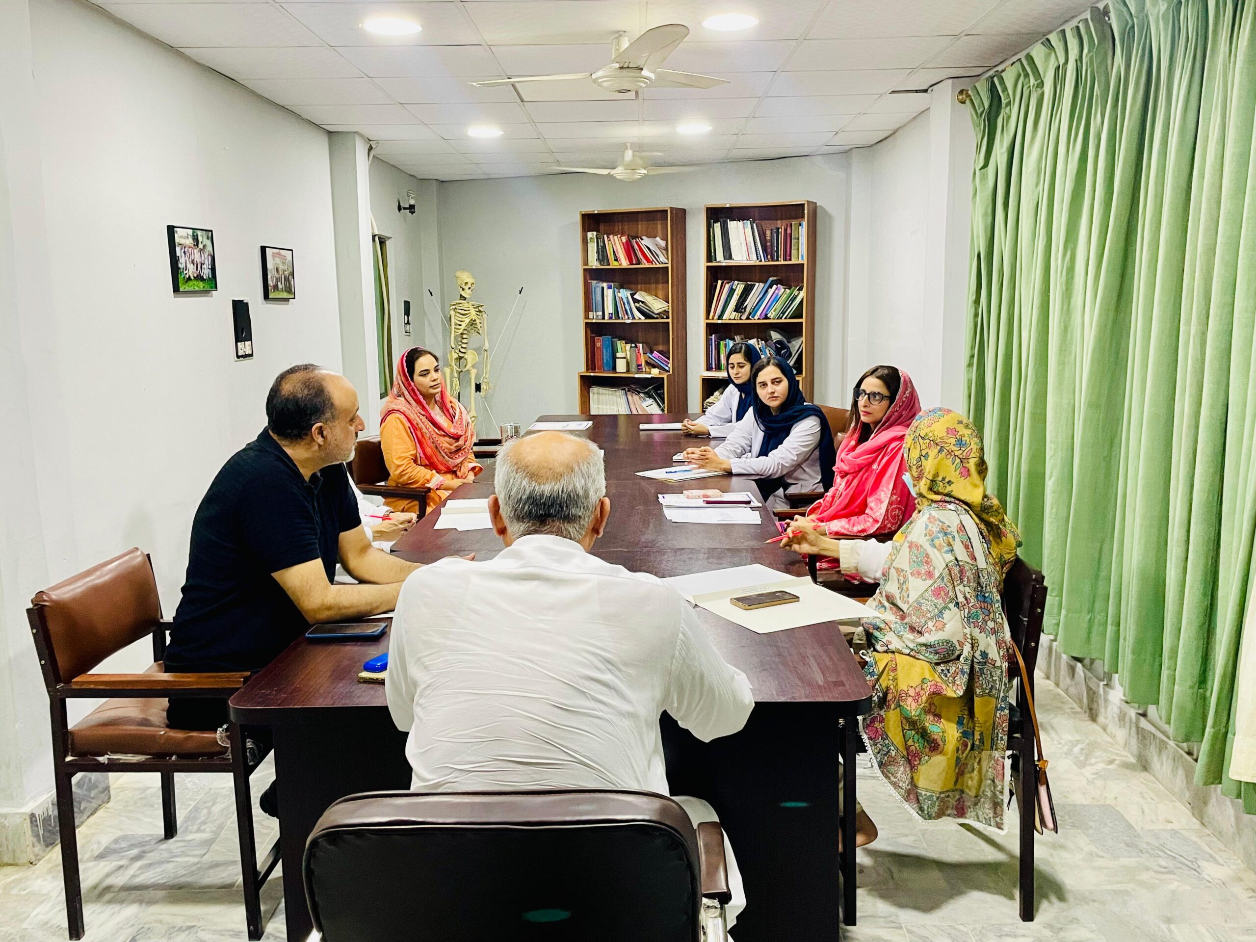 Department heads convened to review the MCQs submission status and finalize the datesheet for the Final Year BDS Mid-Term Exam, ensuring timely preparation and coordinated execution.