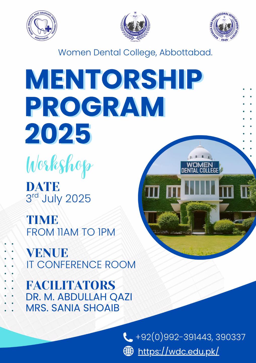 A highly engaging and interactive Mentorship Program Workshop was held at Women Dental College, Abbottabad, aimed at fostering professional development, academic support, and personal growth.