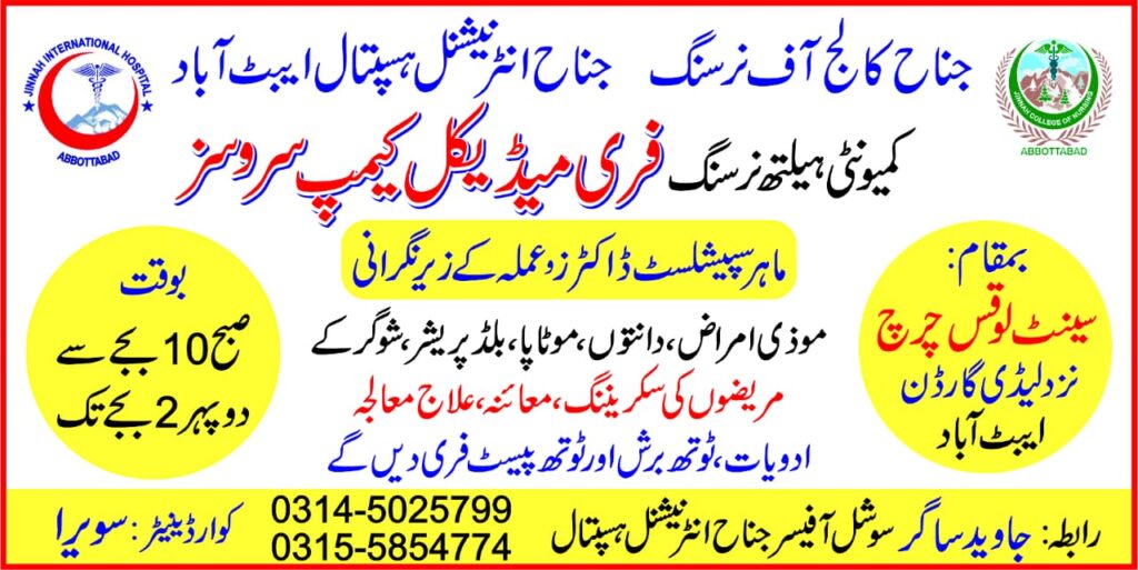 Free Medical Camp in St. Luke’s Church Abbottabad Free Medical Camp by Jinnah College of Nursing & Jinnah International Hospital in Partnership with Women Medical & Dental CollegeJinnah College of Nursing and Jinnah International Hospital, in partnership with Women Medical & Dental College, successfully held a Free Medical Camp on […]